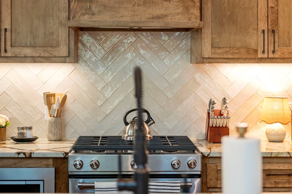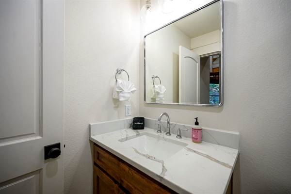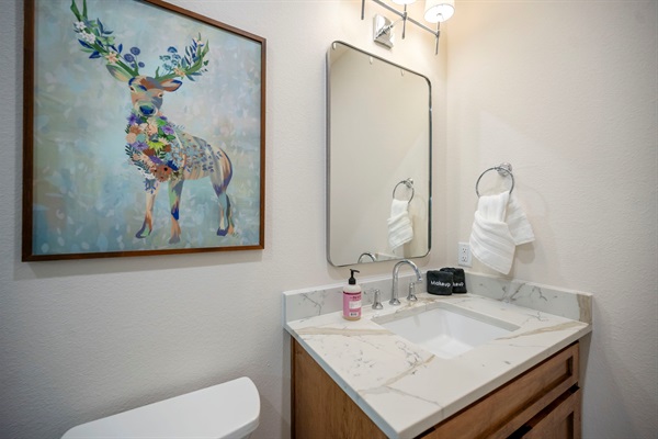 From marble counters to soft lighting, this space blends everyday function with cabin charm. ✨🏡