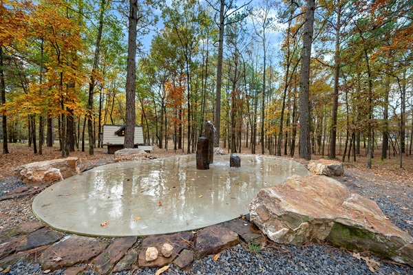 Settle into plush seating, flip on the fireplace, and enjoy the peaceful forest breeze.
