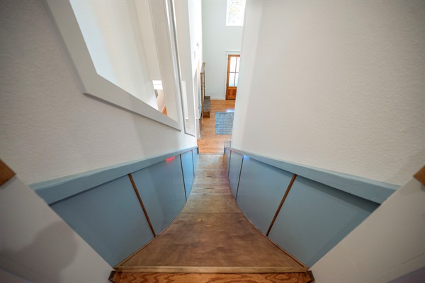 Unique indoor slide next to the staircase—an unforgettable feature kids love during their Broken Bow stay. 🌲🛝